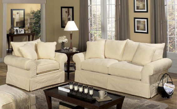 Sofas filled with foam give a firm appearance and feel, it also holds shape well. Cushions that are filled with feathers are comfortable and soft, and often have a casual look. However, these fills would need regular plumping.