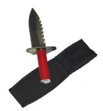 Like all Lesche digging tools, this serrated digger is designed to be strong, durable, rust-resistant, and perfectly balanced.  With a five-year warranty against breakage under normal conditions of use, the Lesche digger is an impressive landscaping tool.  This quality digger is 12” long, weighs 18 ounces, and comes with a durable Lesche cordura sheath.